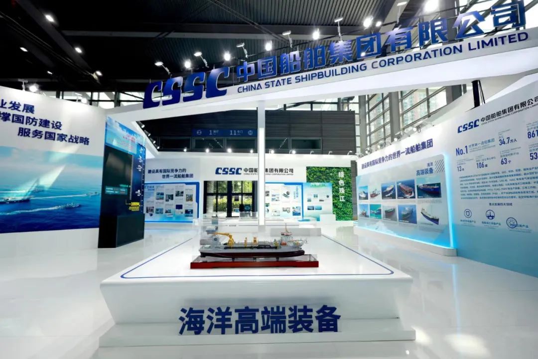 在大會的展示環節,中國船舶集團展臺通過集團總體、海洋防務、海洋高端裝備、工藝技術創新發展、海洋經濟新業態、工匠風采、“奮斗者”號、綠色珠江八個板塊,分別展出了7500立方米液態二氧化碳運輸船、半潛式全自動現代化三文魚深海養殖裝備、合金鋼中間軸在大型油船上的首次應用等55項創新成果,并展示了28位工匠代表的風采。集團公司展臺采用開放、通透的布局,突出中國船舶品牌元素,集中展示集團公司立足新發展階段,貫徹新發展理念,在戰略重組后以高質量發展為主題,壯大主業實業、加快推動船海產業向中高端轉型發展,以及大力弘揚軍工精神和勞模精神、勞動精神、工匠精神,強化自主創新的整體實力和在推動低碳環保、區域經濟發展等方面的最新成果。集團公司還通過本屆大會“互聯網+展會”模式開設的“云展會”,讓參觀者線上云游中國船舶展臺,擴大企業品牌影響力。