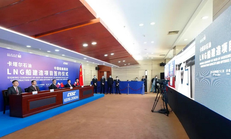 ????2019年4月22日,卡塔爾石油委托其子公司卡塔爾天然氣公司就“百艘LNG船計劃”進行招標。中國船舶集團高度重視、精心準備、積極溝通,組織旗下滬東中華聯(lián)合中國船舶工業(yè)貿(mào)易有限公司(CSTC)全力推進各項競標工作。經(jīng)過一年的不懈努力和先后四輪談判,中國船舶集團最終在激烈的國際競爭中勝出,為卡塔爾石油建造下一代LNG船,彰顯了中國船舶集團在高端海洋裝備領(lǐng)域的強大實力。此次簽約也將為中國船舶集團完成全年目標任務(wù)奠定堅實基礎(chǔ)。
