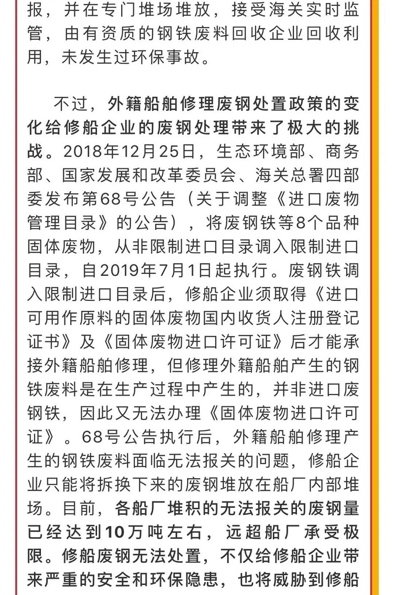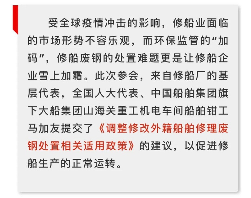 船舶看兩會|全國人大代表馬加友:修船廢鋼政策調整勢在必行!