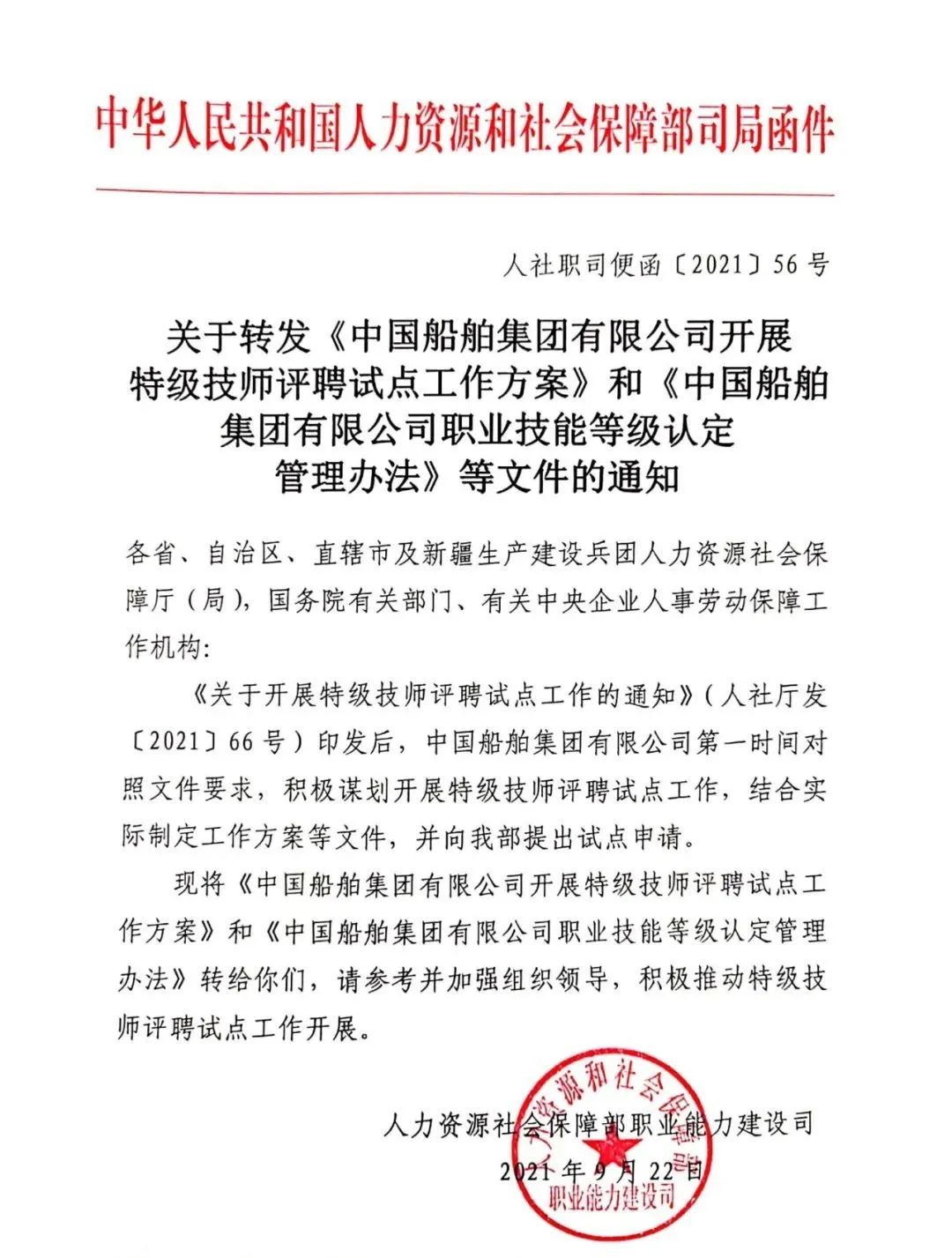 通知發(fā)布后,中國船舶集團(tuán)第一時間對照文件要求,積極謀劃開展特級技師評聘試點工作,集團(tuán)公司黨組審議出臺《職業(yè)技能等級認(rèn)定管理辦法》,進(jìn)一步明確以“特級技師”為塔尖的六個技能等級,第一時間制定特級評聘工作方案,積極向人社部申報特級技師評聘試點。同時部署了2021年特級技師評審工作,今年計劃增加80名左右特級技師。