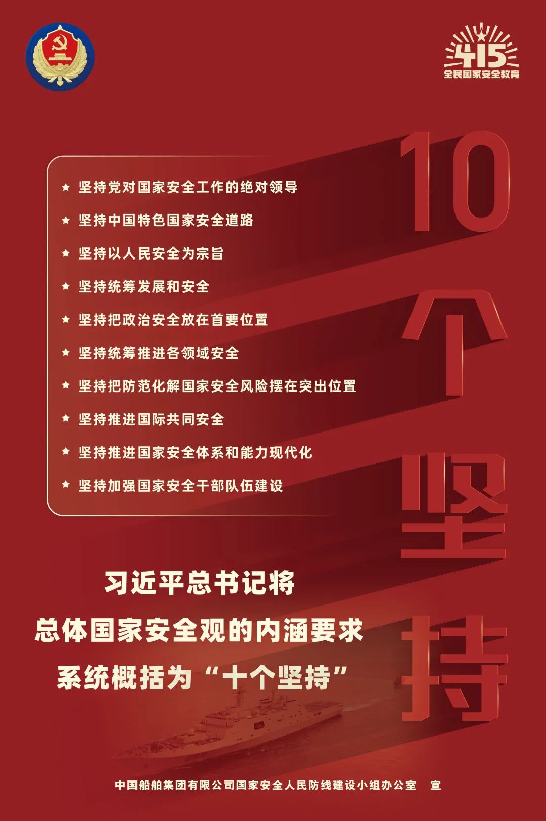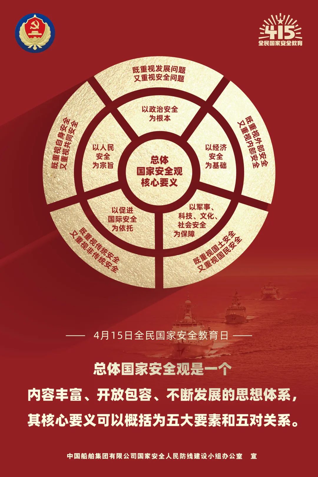 2014年4月15日,習近平總書記在中央國家安全委員會第一次會議上首次提出總體國家安全觀,強調要準確把握國家安全形勢變化新特點新趨勢,堅持總體國家安全觀,走出一條中國特色國家安全道路。