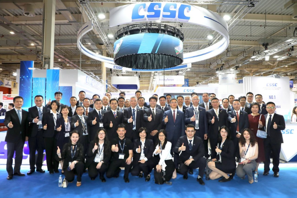 此次展會,中國船舶集團攜旗下19家成員單位參展,有關(guān)成員單位負責(zé)人率隊赴展會開展重點船海項目經(jīng)營洽談并拜訪當(dāng)?shù)睾椭苓厙铱蛻簟<瘓F公司以“共贏未來”為參展主題,設(shè)置集團總體區(qū)、綠色航運解決方案區(qū)、低碳環(huán)保配套設(shè)備區(qū)共3個展示區(qū)域,重點展示了135500總噸大型郵輪、175000方LNG運輸船、24000箱超大型集裝箱船、210000噸氨燃料散貨船、LNG雙燃料VLCC等一系列高技術(shù)、高附加值明星產(chǎn)品,以及CPGC-WinGD 10X92DF-M甲醇雙燃料發(fā)動機、船用碳捕捉系統(tǒng)等全球船東高度關(guān)注的綠色低碳配套設(shè)備。同時,通過展臺上醒目的品牌標識、層級化的品牌體系圖、富有感染力的品牌推介視頻,首次面向全球客戶,立體化展示“中國船舶”品牌及下屬企業(yè)品牌和產(chǎn)品品牌體系,進一步強化了集團公司品牌形象。