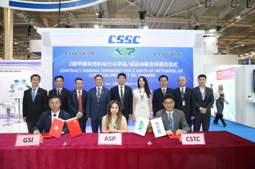 中船貿(mào)易、廣船國際與ASP公司2艘5萬噸MR甲醇雙燃料油輪項目簽約儀式
