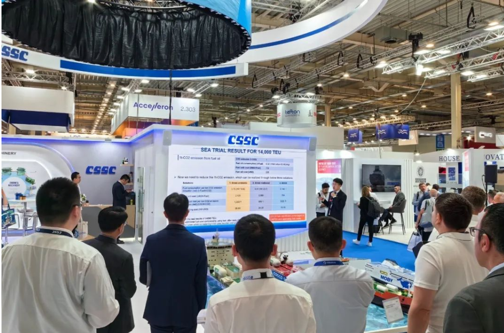 展會期間促成集團公司多家成員單位船海項目成功簽約,共計超50億元人民幣,包括中船貿(mào)易、廣船國際與EPS公司4艘11萬噸LRII型LNG雙燃料油輪項目簽約、與ASP公司2艘5萬噸MR甲醇雙燃料油輪項目簽約,中船貿(mào)易、大連造船與CAPITAL公司2艘30萬噸VLCC建造項目簽約,另外還簽訂了40多億元新造船項目意向書;同時,參展成員單位在集團公司展臺上開展了豐富的推介活動,包括江南造船“綠色船型家族”產(chǎn)品推介會、中船系統(tǒng)院“羅經(jīng)進入光纖時代”產(chǎn)品推介會、七一一所“全球首個全流程船用碳捕捉系統(tǒng)案例分享會”,吸引了眾多國際船東、船級社和設(shè)備廠商前來觀摩,并共同探討未來合作機遇。
