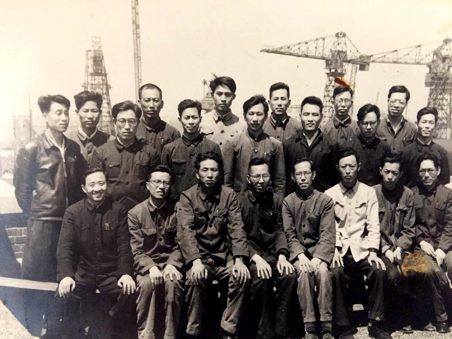 20世紀(jì)60年代沈聞孫(二排左三)與同事在造船現(xiàn)場合影