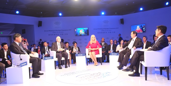 第11屆夏季達沃斯聯席主席、國家電網董事長舒印彪參加“引領能源轉型”對話節目