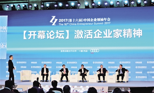 圖為“2017(第十六屆)中國企業(yè)領(lǐng)袖年會(huì)”開幕主題論壇現(xiàn)場(chǎng)。 記者 崔國強(qiáng)攝