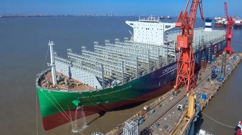 防疫復工兩手硬|滬東中華建造的全球首艘23000箱液化天然氣動力集裝箱船試航