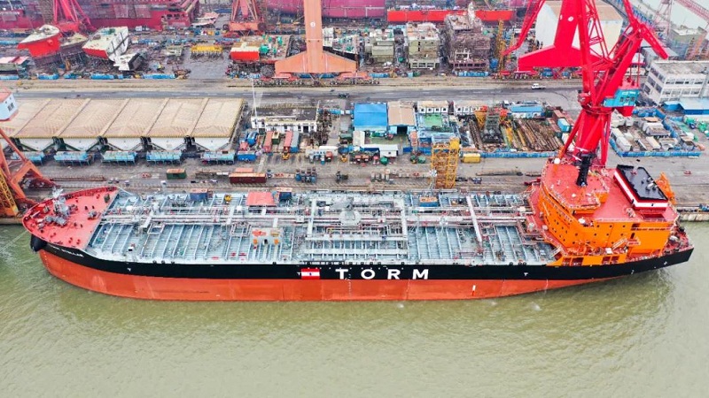 ????廣船國際為TORM航運公司建造的7艘5萬噸化學品/成品油船中最后一艘船提前2天完成試航歸來。該型船加裝開式除硫系統,是環保、節能、高效的新型油船,試航的完成,為搶抓完工節點贏得了寶貴時間,系列船全部交付指日可待!