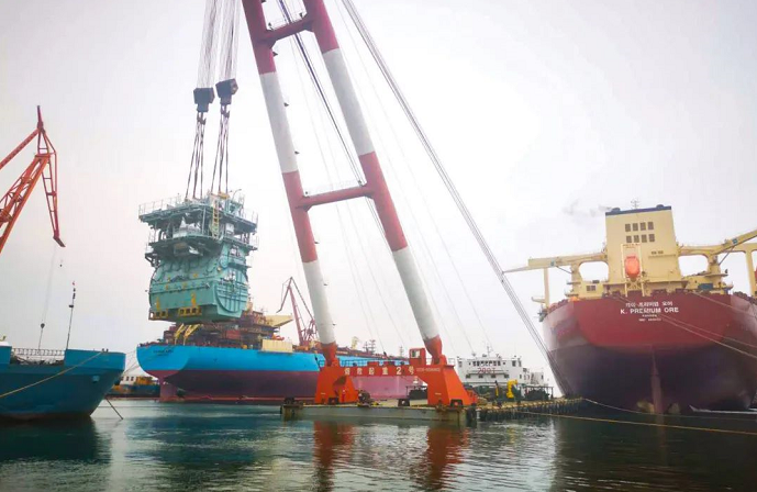 日前,由中國船舶集團旗下廣船國際承建的廣東陽江南鵬島300兆瓦海上風電項目首套導管架及輔助平臺順利交運。這是廣船國際承建并交運的首批首個風電導管架,也是目前國內最大的風電導管架,標志著廣船國際在風電業務領域實現了經營、生產、交付全環節突破,對后續承接風電項目業務、拓展風電市場具有重要意義。