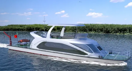 “雄安監測一號”為七一二所又一艘整船建造的新能源電動船,是新能源產業化標準船型之一,主要用于雄安新區白洋淀的水質監測及環境執法。