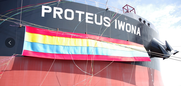“普羅透斯?伊沃娜”號(hào)(PROTEUS IWONA)是外高橋造船為交銀租賃建造的第2艘10.9萬載重噸阿芙拉型雙燃料成品油船。首制船“PROTEUS JESSICA”號(hào)于8月交付。