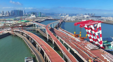 12月15日,隨著最后一節段鋼梁精準對位至CP8~CP9墩頂支座上,澳氹第四條跨海大橋72節段鋼梁吊裝任務全部完成大橋引橋和匝道實現全部合攏。