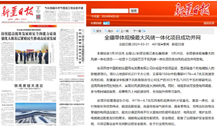 近日,中國船舶集團(tuán)旗下中船科技子公司中船風(fēng)電和哈密國投聯(lián)合開發(fā)的新疆哈密百萬千瓦風(fēng)儲(chǔ)一體化項(xiàng)目首臺風(fēng)機(jī)成功并網(wǎng)發(fā)電,央視《新聞聯(lián)播》、新華網(wǎng)和《新疆日報(bào)》等紛紛關(guān)注報(bào)道。