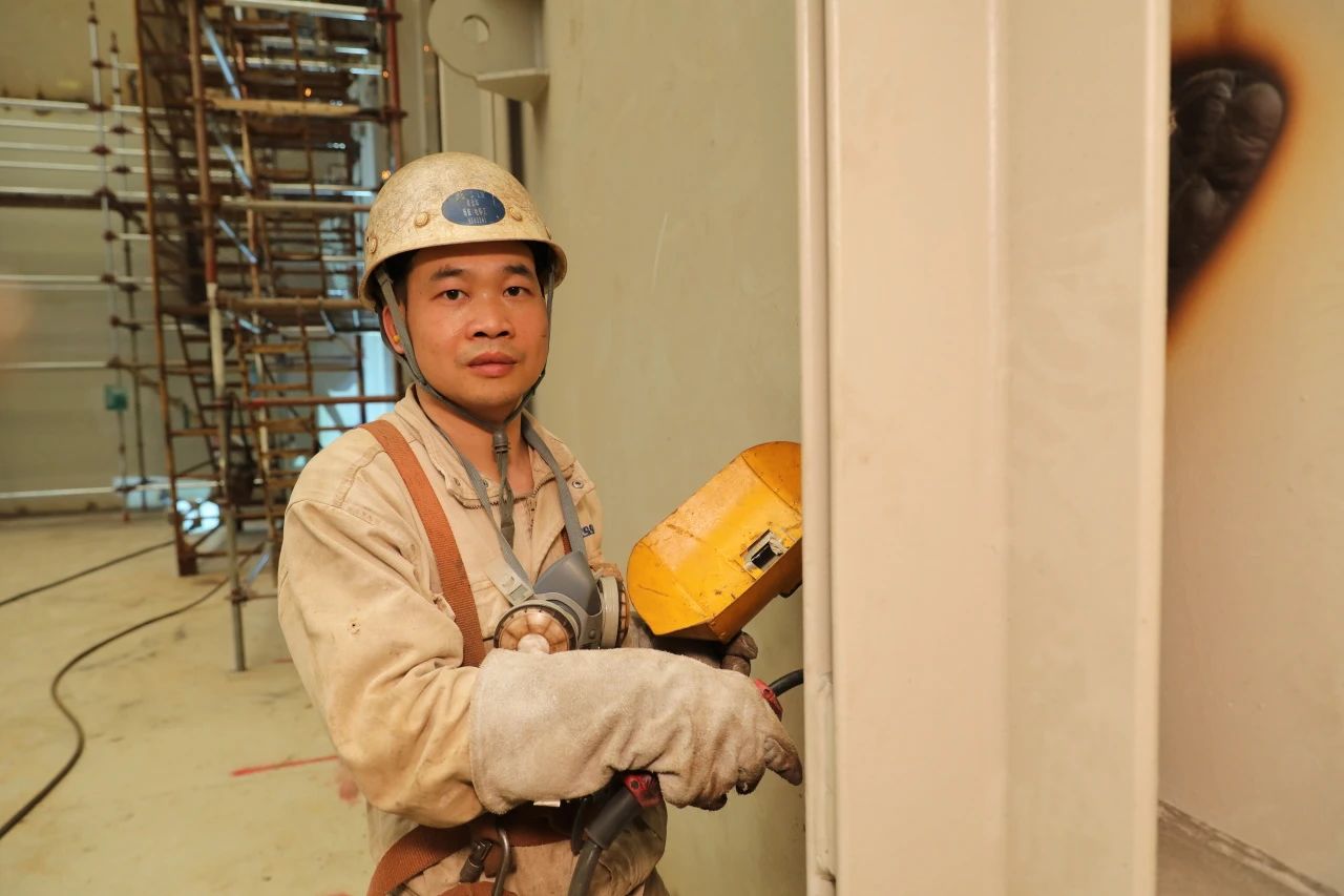 為了更好地掌握超厚板的焊接,搭載一部支持大合攏一班的梁金華和同事們一起進行了專門的焊接培訓。有趣的是,老師謝祖靠、學生梁金華,都是來自該所技校的畢業(yè)生。既是師兄弟、又是師徒,這在黃埔文沖的工人隊伍當中并不少見。