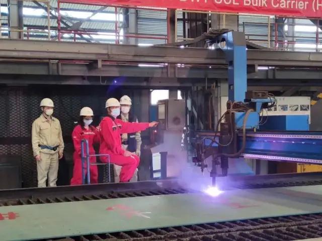 ????為按期實(shí)現(xiàn)建造目標(biāo),中船澄西成立了22號(hào)8.2萬(wàn)噸船建造臨時(shí)黨支部和臨時(shí)團(tuán)支部,制定黨建帶團(tuán)建專項(xiàng)攻堅(jiān)計(jì)劃,發(fā)揮黨員和青年團(tuán)員旗幟作用。 在船臺(tái)搭載過(guò)程中,中船澄西克服疫情期間關(guān)鍵船用設(shè)備到貨晚、人員到位少等困難,齊心協(xié)力啟動(dòng)建造“快進(jìn)鍵”,不斷提高生產(chǎn)效率。