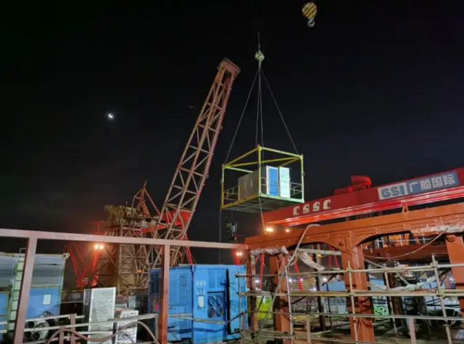 就在交船同一天,廣船國際在建的阿爾及利亞客滾船最后一個(gè)預(yù)制艙室單元完成吊裝進(jìn)艙,標(biāo)志著全船共360個(gè)預(yù)制艙室單元全部按計(jì)劃節(jié)點(diǎn)完成進(jìn)艙定位,比原計(jì)劃提前了整整10天。