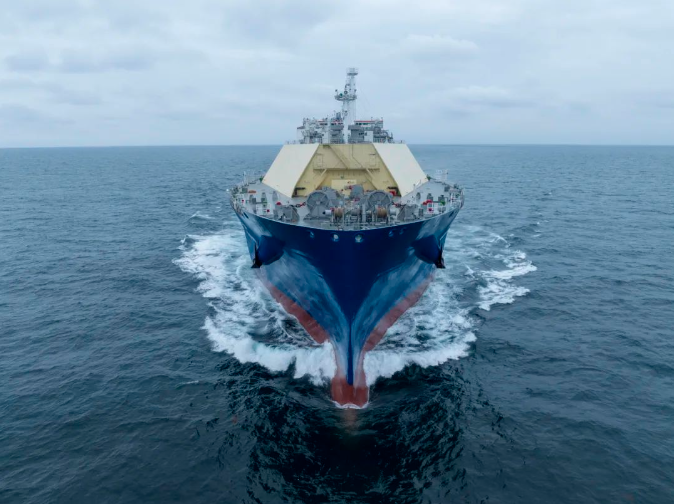 5月30日,中國船舶集團旗下滬東中華自主研發設計建造的17.4萬立方米大型液化天然氣(LNG)運輸船“華山”號較合同期提前7個月在長興島廠區命名交付。