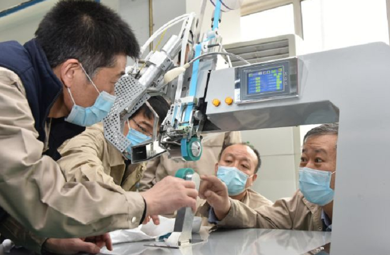 ????國機集團用9天時間,分別完成首臺全自動平面口罩機和醫用防護服壓條機樣機研制,并迅速建立量產能力。此外,國機集團還牽頭制定并發布《防護服貼條機》《全自動口罩機》團體標準,將科研成果及技術經驗標準化,促進行業規范發展。