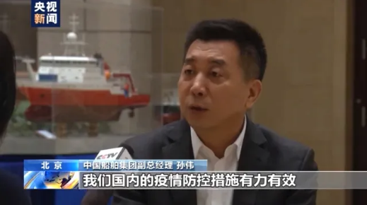 中國船舶集團副總經理 孫偉:其中重要的一條,就是我們國內疫情防控措施有力有效,堅定了船東對中國企業的信心,我們的研發人員主動作為、創新工作,確保了在疫情下和客戶的溝通交流各個環節的暢通、高效。