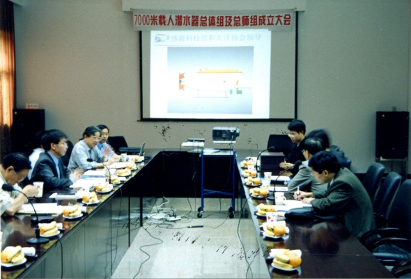 △7000米載人潛水器總體組及總師組成立大會,發言者為徐芑南。