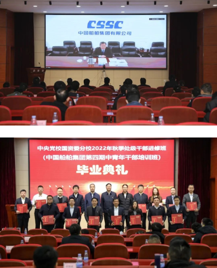 12月9日,中國船舶集團第四期中青年干部培訓班(中央黨校國資委分校2022年秋季處級干部進修班)召開畢業典禮。中國船舶集團有限公司總經理助理、人力資源部(組織人事部)主任唐永春出席儀式并講話,典禮由集團公司黨校常務副校長、綜合院黨委書記楊志軍主持。