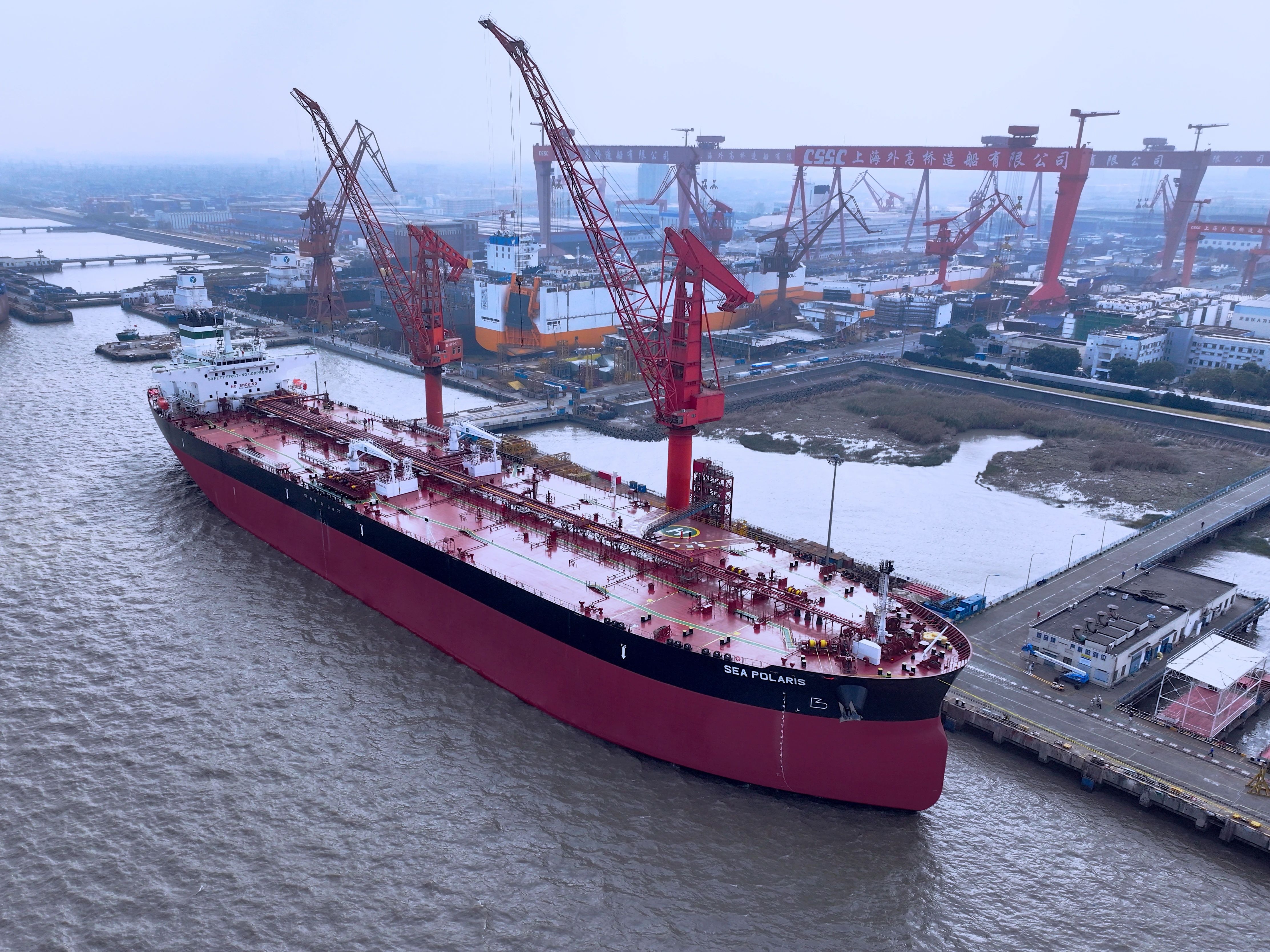 12月1日,中船集團旗下外高橋造船為挪威Frontline公司建造的15.8萬噸蘇伊士型原油船“SEA POLARIS(海洋北極星)”號正式簽字交付,為該公司全年交船任務畫上了圓滿句號。至此,2025年外高橋造船順利交付29艘船舶,累計270.65萬載重噸,超額完成7艘。