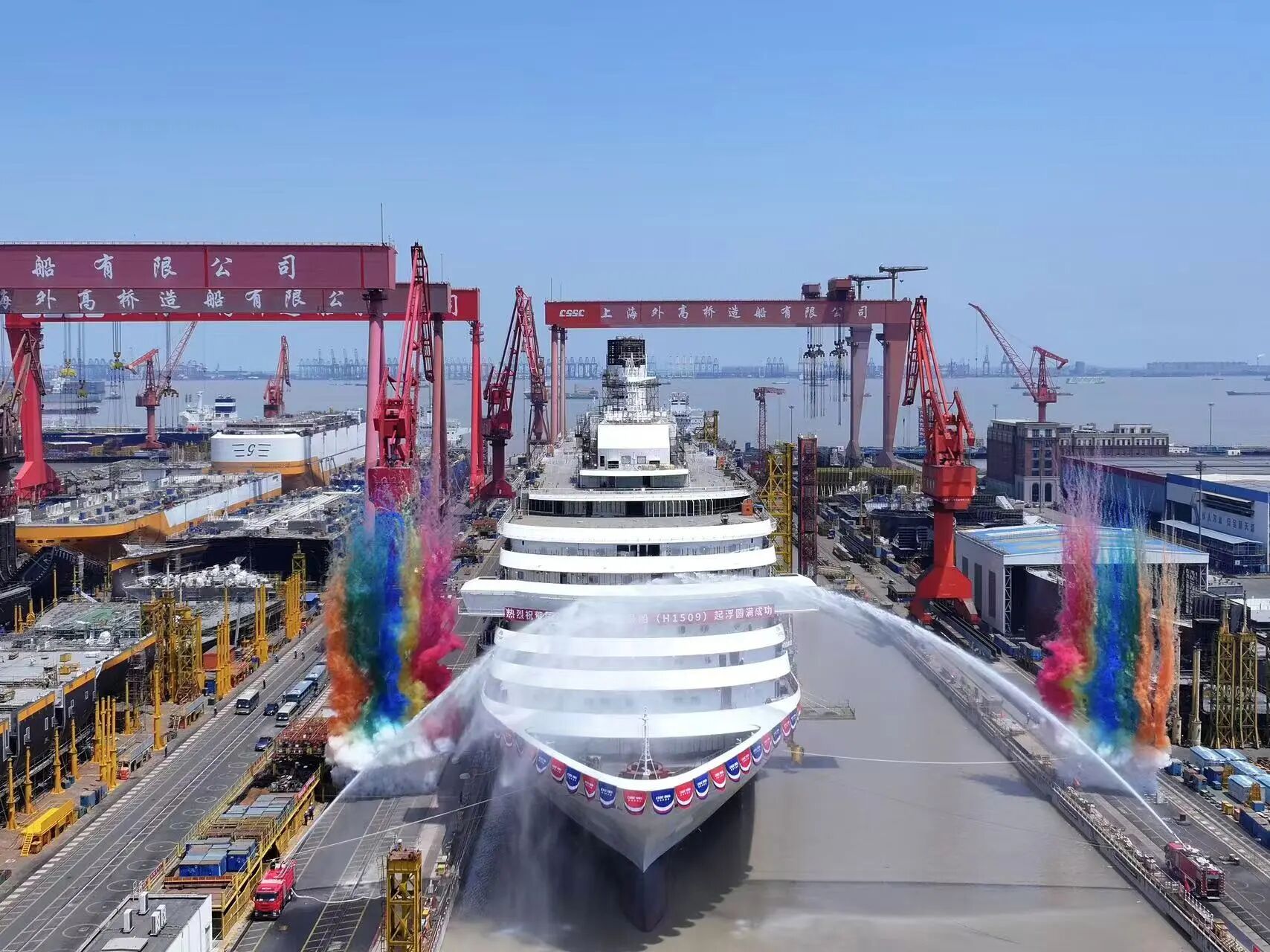 截至目前,第二艘國產大型郵輪“愛達·花城號”實際進度超前于計劃,工程總進度超88%,全船貫通、起浮等關鍵節點年內均已高質量完成,整體建造效率較首制船提升20%,為后續系統調試與出塢作業打下堅實基礎。項目正朝著2026年3月出塢、5月底試航、年底前交付的目標全力沖刺。