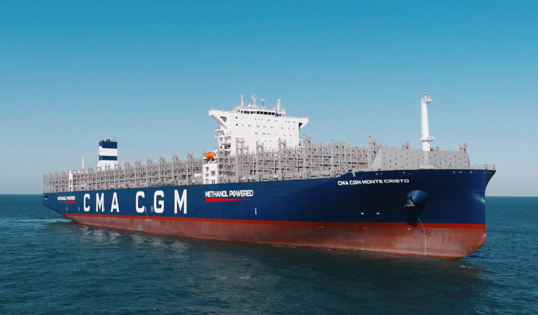 近日,15000TEU甲醇雙燃料動力集裝箱船“CMA CGM MONTE CRISTO”號交付。該船由大連造船下屬大船天津建造,中船物資恒宇能源公司提供“評估、加注、駁運”一站式全鏈條服務。