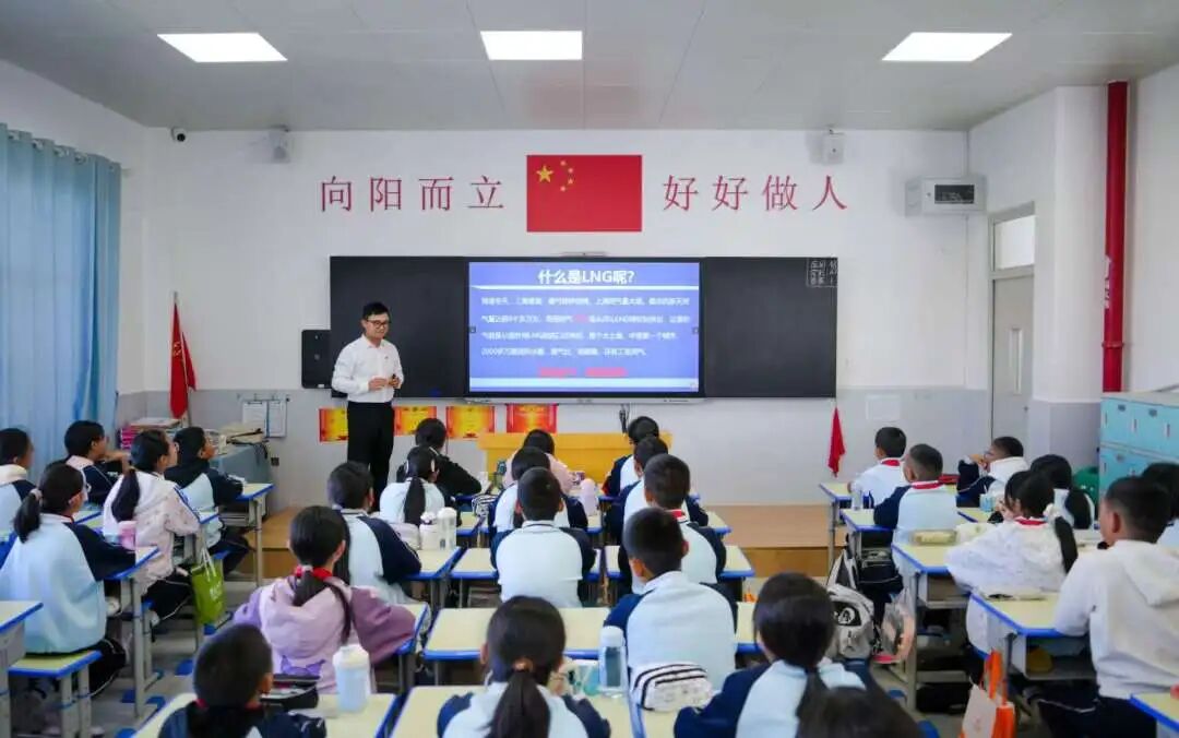 同時,志愿者為94名小學(xué)生帶去3堂科普課程,回顧人民海軍發(fā)展歷程,厚植孩子們的愛國情懷;精講民用船舶種類,點亮孩子們的探索精神;揭秘LNG船關(guān)鍵技術(shù),展現(xiàn)中國“智”造實力,增強孩子們的自豪之感。課程中,志愿者們深入淺出講解,學(xué)生們?nèi)褙炞W(xué)習(xí),同學(xué)們感受到中國船舶“智領(lǐng)深藍(lán)”的魅力,紛紛提問:護(hù)衛(wèi)艦一次能航行多遠(yuǎn)?一艘LNG船能載多少噸液化天然氣?“海上帶貨王”到底有多大?……孩子們展現(xiàn)出對國防和海洋的濃厚興趣。